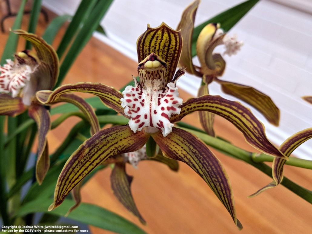 • Facts: There are about fifty-five Cymbidium species, some of which hybridize with each other. The common name “Boat Orchid” is a reference to the shape of the labellum on some species.